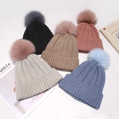 可爱保暖毛线帽子女冬毛球拼色百搭针织帽