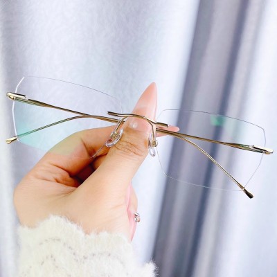 超轻纯钛无框大镜片女士防蓝光可变色近视眼镜