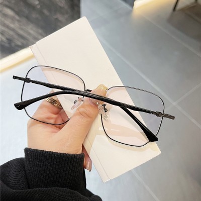 超轻纯钛无框大镜片女士防蓝光可变色近视眼镜