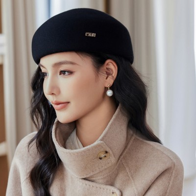 女百搭贝雷帽英伦风简约气质毛呢帽