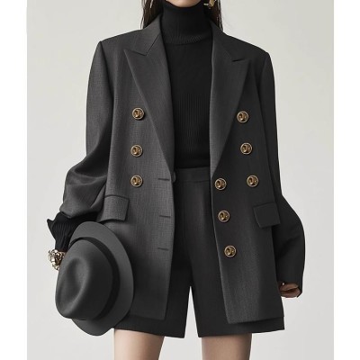 气质职业高级感小众长袖西装外套女双排扣中长款西服
